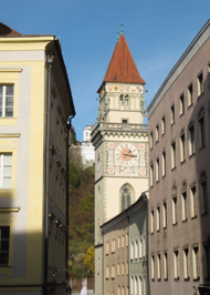 The first mention of the Altes Rathaus dates back to 1298, when a rebellion sprung up against the prince bishop in Passau. The actual building of the Altes Rathaus, or Old Town Hall dates from the 15th century, when in 1405, it was created by combining eight patrician houses into a building in the Venetian style. The Small Hall and the Large Hall, or Baroque Festival Hall are both accessible by a Gothic-styled staircase that dates from 1446, the same year frescoes were painted on the building by Ruprecht Fueterer and Rueland Freauf the Elder. These were replaced in 1922 with modern murals, by Joseph Hengee, depicting the emperor Ludwig of Bavaria. On the south side of the town hall stands the Kuenberburg Palace, built by Bartholmäus in 1680-1682. In the 17th century, the Altes Rathaus was rebuilt after a devastating fire, the interior plan designed by Carlo Lurago and Giuseppe Battista Carlone, two Italian architects who also designed the 17th century Baroque-styled St. Stephan’s Cathedral. The large mural in the entrance of the Large Hall depicts the wedding of Emperor Leopold I in 1676, created by Ferdinand Wagner between 1887 and 1893. The most recognizable feature of Old Town Hall, the 38 meter/124 foot high Neo-Gothic tower, was added between 1889 and 1892 by Heinrich Baron von Schmidt. In 1938 the ridge turret was demolished because of its state of decay. In 1991, an automatic chime containing 23 bells was installed. These bells can also be played as an instrument. Today, the Large Hall is the perfect environment for large-scaled meetings. The The Small Hall is used by the Register Office for weddings and also serves as a Town Councillor room for special sessions. Henry and I enjoyed dining in the Rathaus restaurant where traditional German cuisine is served.